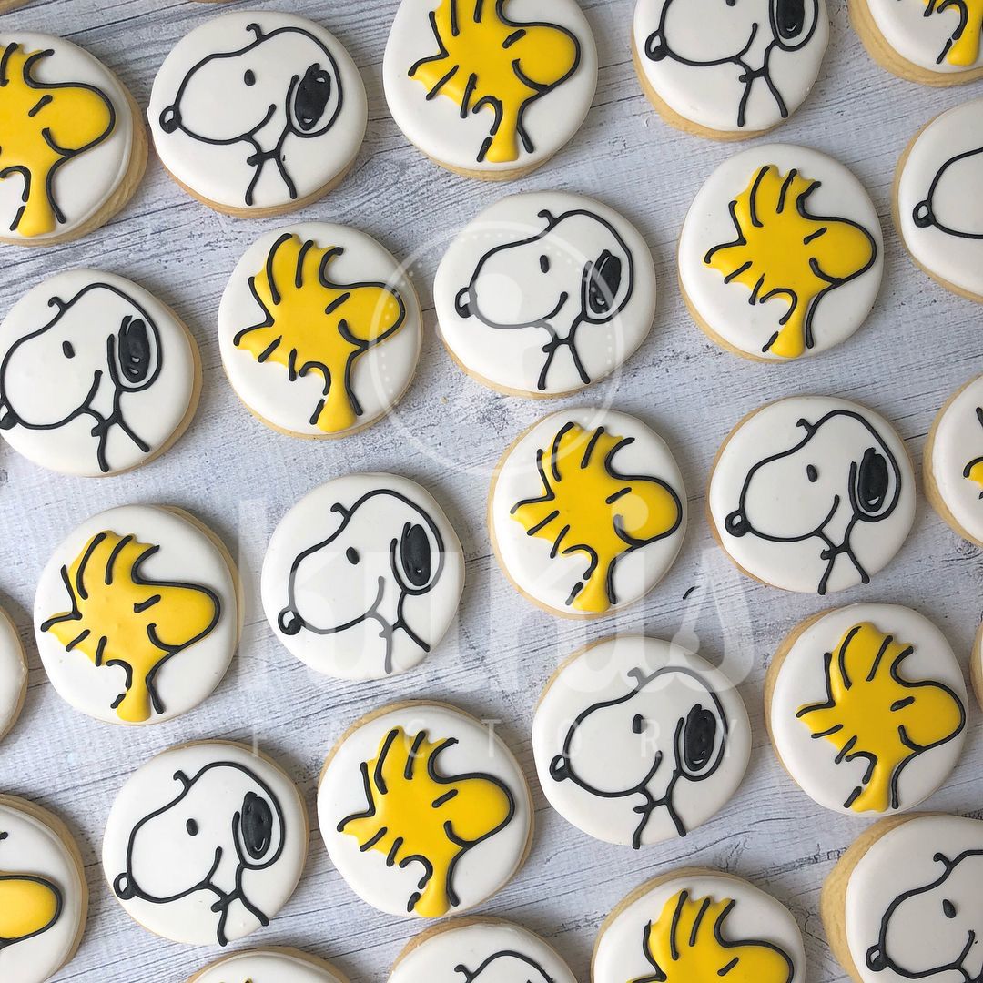 Deliciosas galletas con forma de snoopy y woodstock cubiertas de chocolate